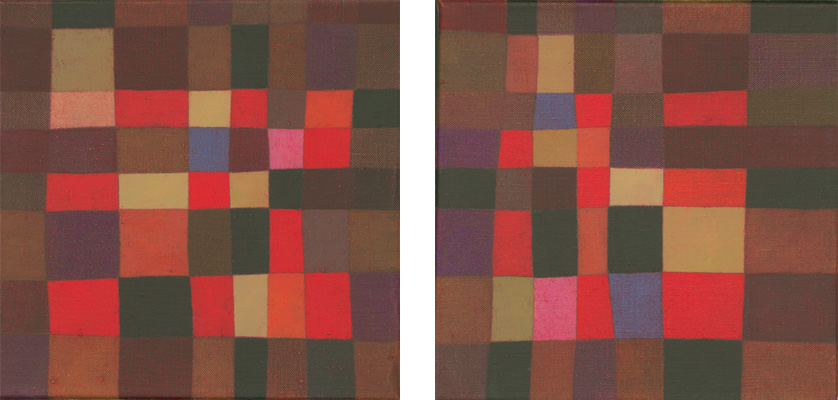Julia Ritson, Untitled 0210, 2002, oil on linen, 21 x 21cm each