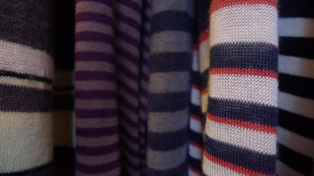 | horizontals in the wardrobe left to right, Nicole Farhi, Bensimon x2, TL Wood, APC |