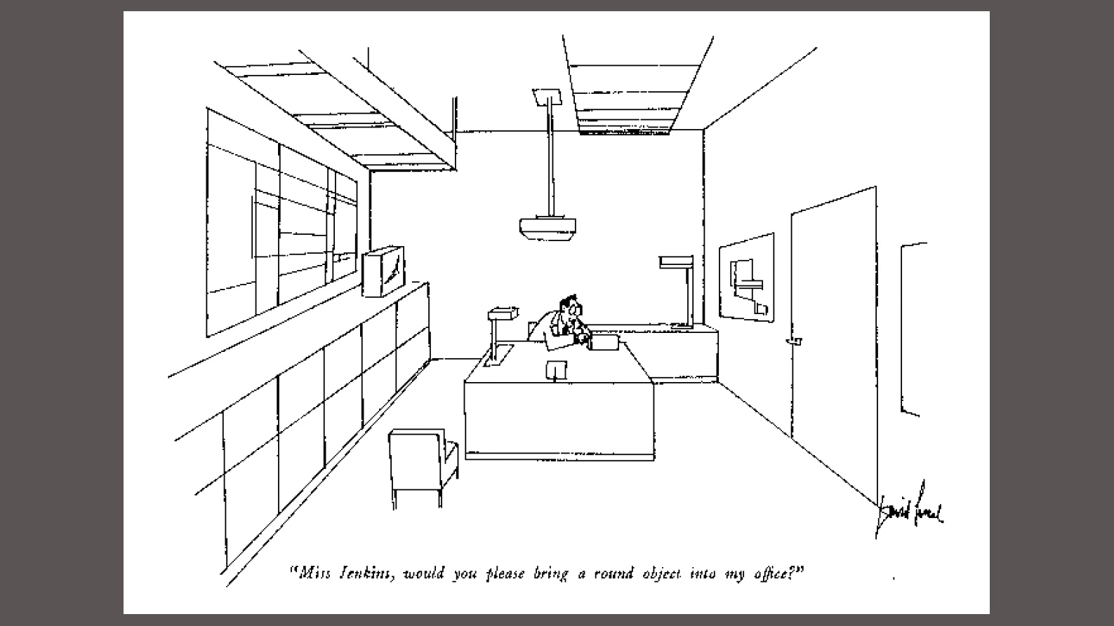 | Miss Jenkins, would you please bring a round object into my office! |