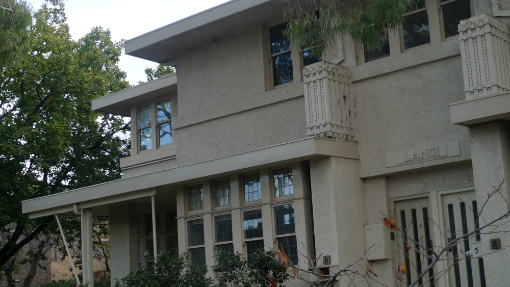 Walter’s wife, Marion Mahoney Griffin, was thought to have planted The National Trust registered lemon scented gums out the front of the Langi flats.