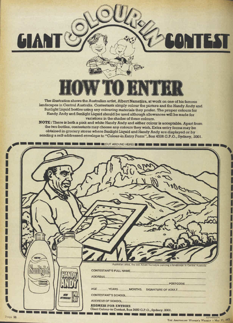 “Unless aboriginal artist Albert Namatjira overcomes his worries over white men he will never paint again”. Mr Rex Battarbee said. Mr Battarbee was speaking after a remarkable display at his home, of contemporary aboriginal, and white men’s impressions of the Central Australian scene. Namatjira, the most famous of all black painters, was no longer as forceful as he had been, Mr Battarbee said. This was because he was feeling the impact of the white man too much – notably in the wrangles over the building of a house in Alice Springs. Namatjira said to me: ‘I paid more than £400 income tax last year to the Commonwealth Government, but that same Government prevents me from building my own home on my own land with my own money,’ Mr. Battarbee said. He told me definitely that he will never paint again if this state of affairs continued.” Barrier Miner (Broken Hill, NSW 1888-1954), Tuesday 15 May 1951