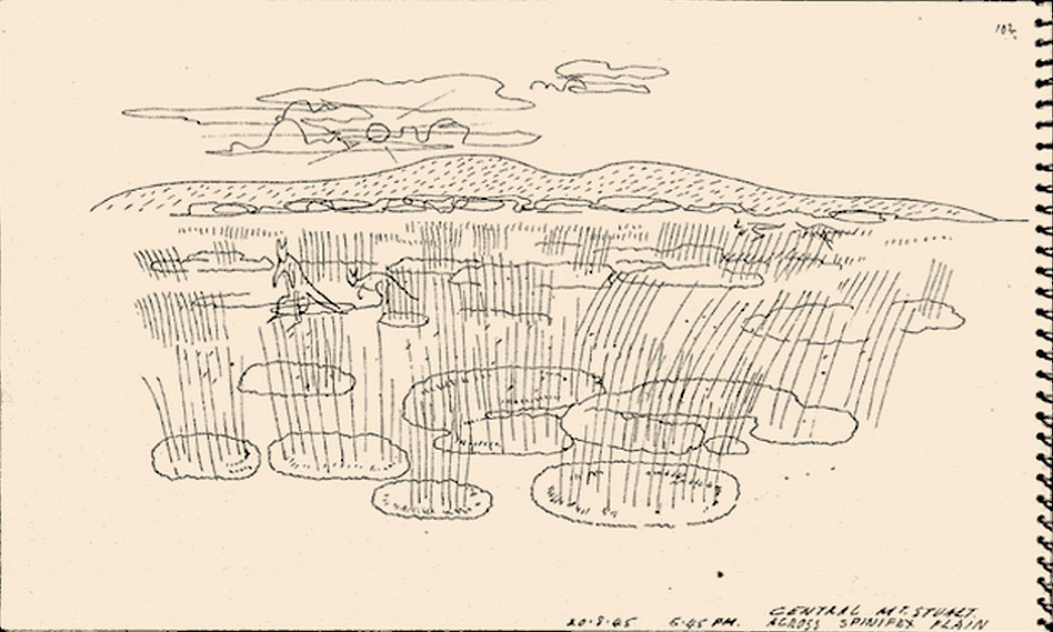 | Eric Thake, Central Mt Stuart across Spinifex Plain, 1945, Sketchbook 3, State Library of Victoria |